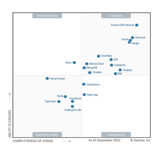 Gartner Magic Quadrant for Cloud Database Management Systems 2022